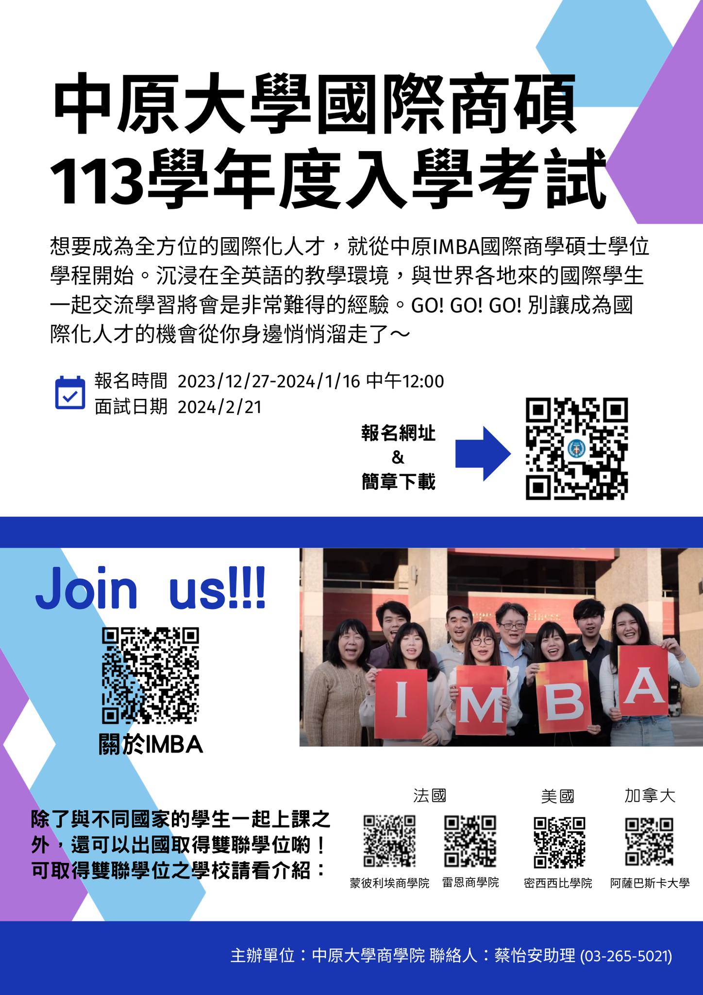 CYCU IMBA Admissions for 2024 Academic Year (Exam Round)
